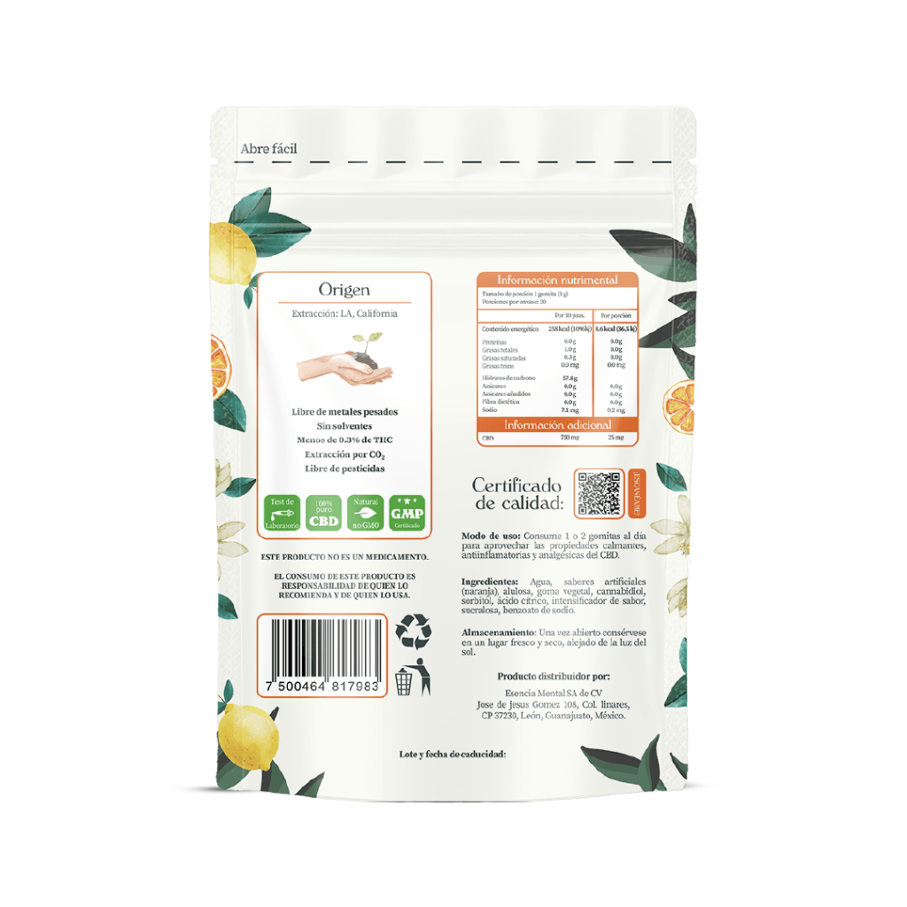 Fórmula vegana, las gomitas de Esencia Mental esta hecha a base de pectina que aparte de sus grandes propiedades, ayuda a obtener una gomita de mayor calidad y perfecta para todas las dietas.